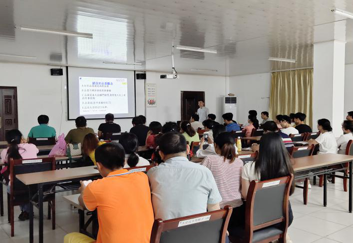 品质部在为员工进行品质管控培训 员工在接受安全生产培训 在生产规模方面,公司不仅没有缩减部门反而对各部生产部门分别加增加机台扩大产能: 冲压部5月下旬新导入三台冲压机并已迅速投入生产中,冲压部今年不断增加机台扩充产能现有车间已不够用,原废料仓已让步为冲压部腾出新机台的生产空间。 新成立的注塑部三车间(以生产RGB产品为主,又称RGB车间)已于5月下旬完成装修,8台新机全部导入到位,6月初已调试好三台新机并投入生产。